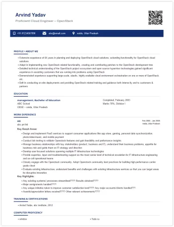What is the best resume format for OpenStack Cloud Engineers in India?
